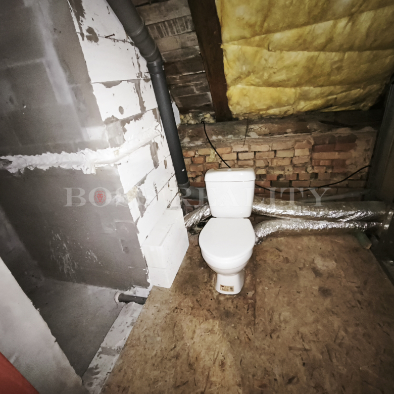koupelna v patře připravena k dokončení (připraveny přípojky: voda, elektřina, odpad)