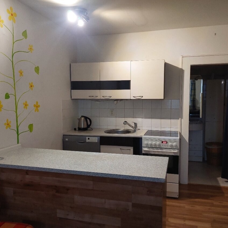 Byt je světlý a působí velmi příjemným dojmem. Kuchyně je vybavena linkou s plynovým sporákem, troubou, myčkou a elektrickým bojlerem pro ohřev vody. V obytné části se nachází sedací souprava, postel a velká šatní skříň se zrcadly. Byt je tak připraven k okamžitému nastěhování bez nutnosti dalších investic.