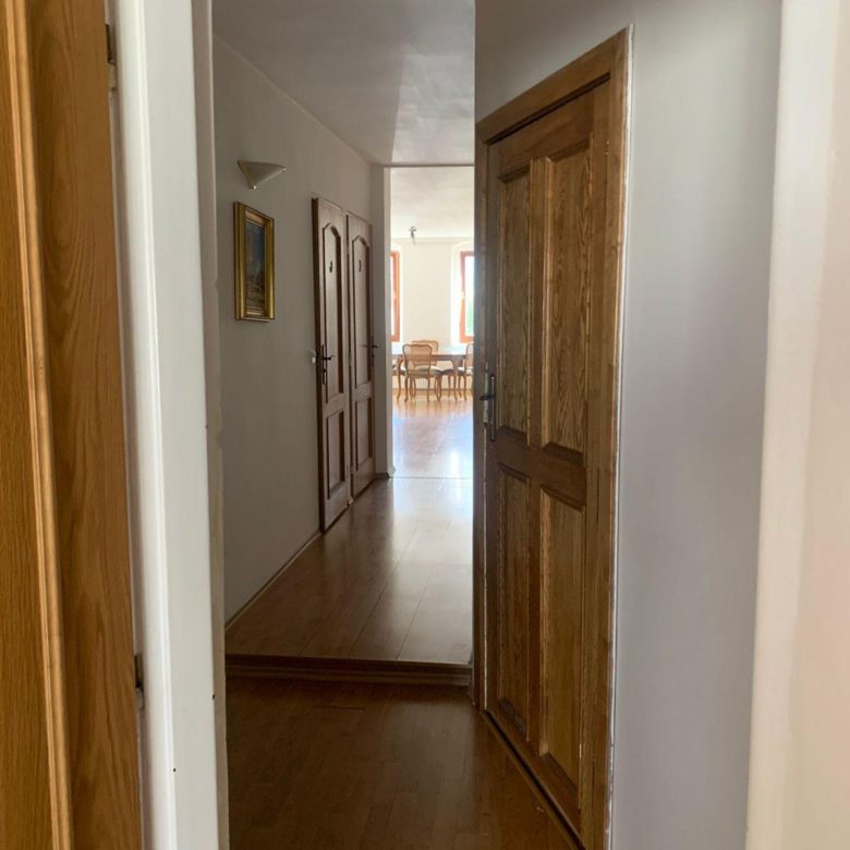 Byt působí velmi příjemně – je světlý, vzdušný a díky vysokým stropům má opravdu hezkou atmosféru. Jídelní prostor s kuchyňským koutem nabízí místo jak pro vaření, tak pro společné chvíle s rodinou nebo přáteli. Kuchyň je vybavena lednicí, troubou se sporákem i myčkou. Technická/ úklidová místnost s bojlerem samostatně oddělena. Dále byt disponuje dvěma samostatnými ložnicemi, koupelnou s vanou a pračkou a samostatnou toaletou. Všechny zmíněné místnosti spojuje dlouhá chodba.